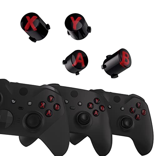 eXtremeRate ABXY Buttons for Xbox Series X & S Controller, Three-Tone Black & Clear with Carmine Red Classic Symbols Replacement Action Buttons for Xbox One S/X, Elite Series 2 & 1 Wireless Controller