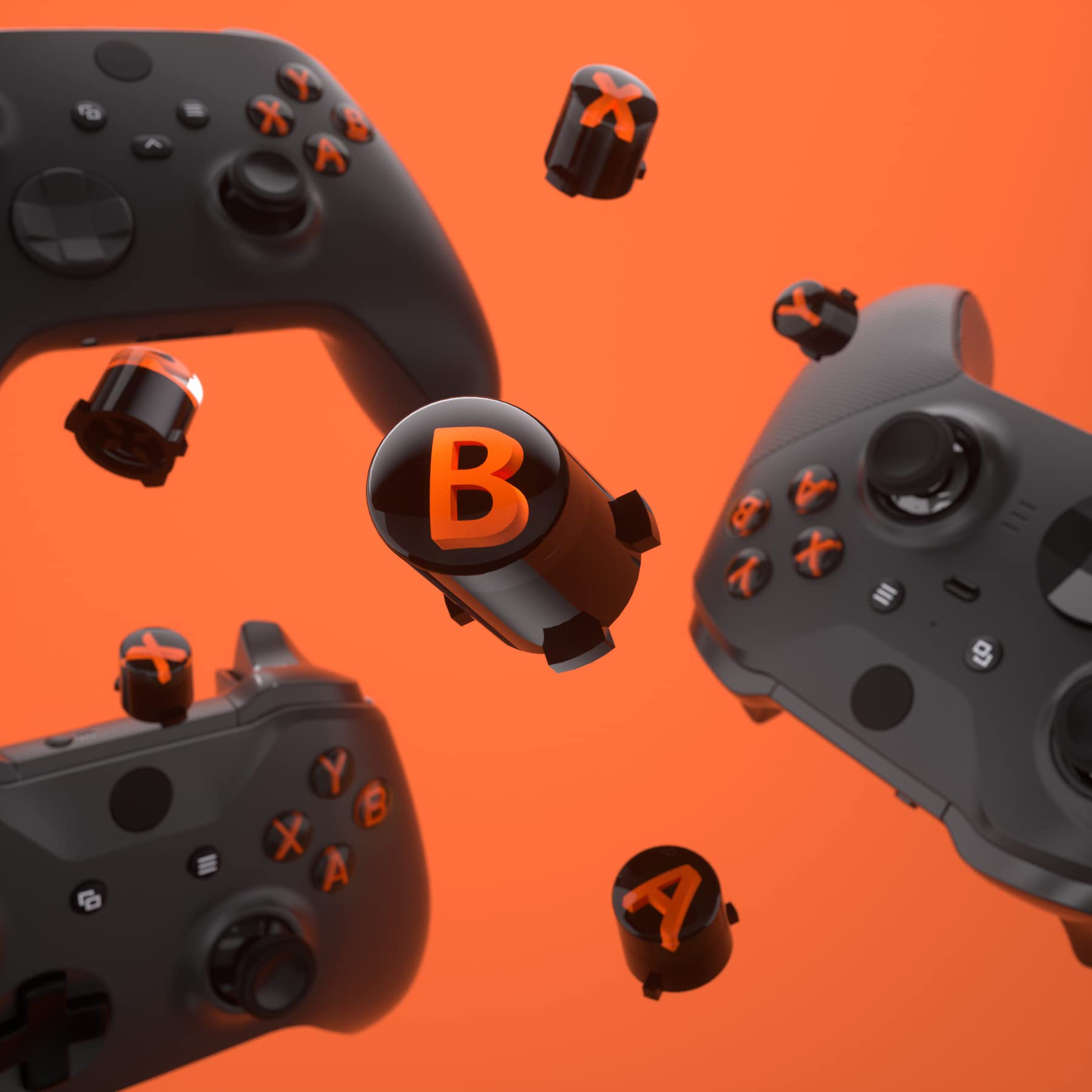 eXtremeRate ABXY Buttons for Xbox Series X & S Controller, Three-Tone Black & Clear with Orange Classic Symbols Action Keys Replacement Buttons for Xbox One S/X, Elite Series 2 & 1 Wireless Controller