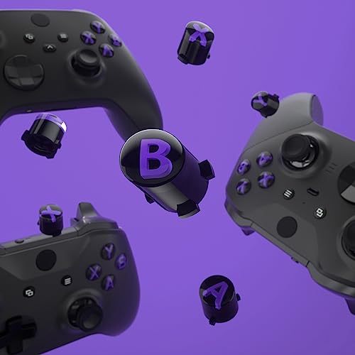 eXtremeRate ABXY Buttons for Xbox Series X & S Controller, Three-Tone Black & Clear with Purple Classic Symbols Action Keys Replacement Buttons for Xbox One S/X, Elite Series 2 & 1 Wireless Controller