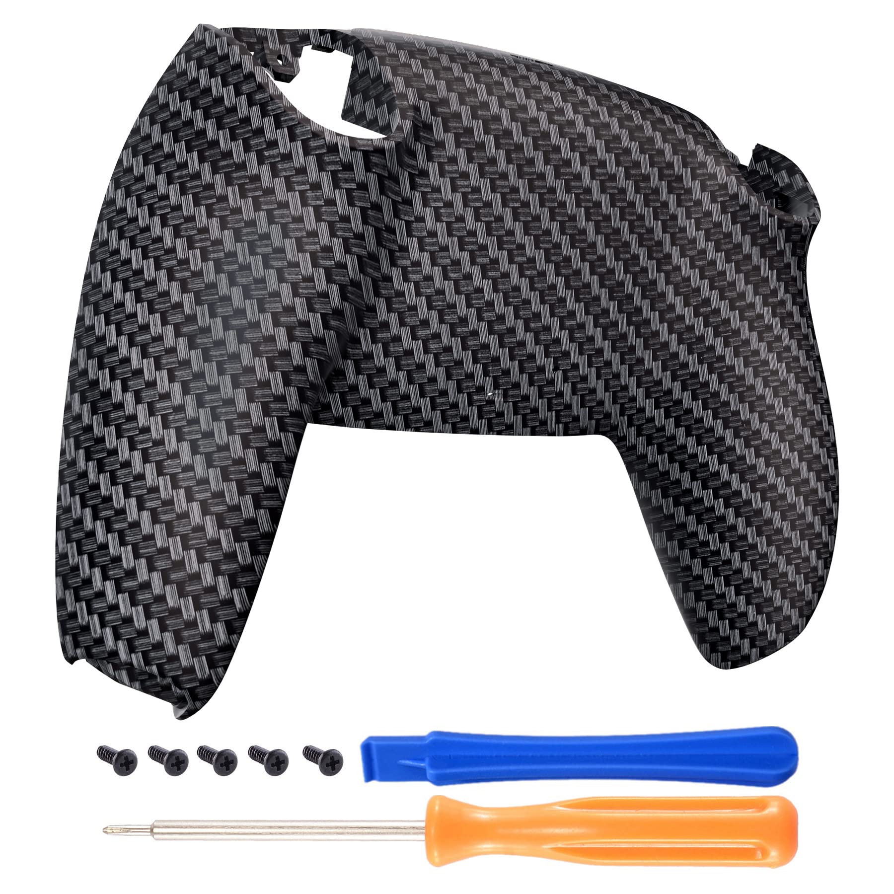 eXtremeRate Black Silver Carbon Fiber Patterned Custom Back Plate Bottom Shell Compatible with ps5 Controller, Soft Touch Replacement Back Shell Cover Compatible with ps5 Controller
