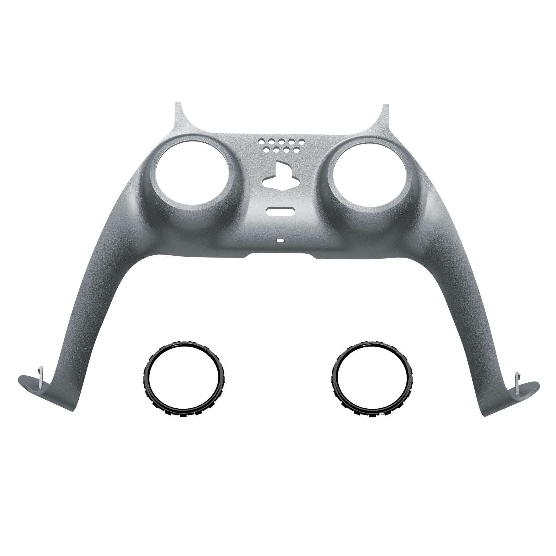 eXtremeRate Metallic Steel Gray Decorative Trim Shell Compatible with p s 5 Controller, DIY Replacement Clip Shell, Custom Plates Cover Compatible with p s 5 Controller with Accent Rings