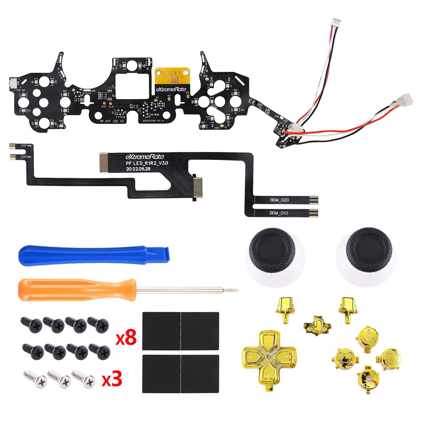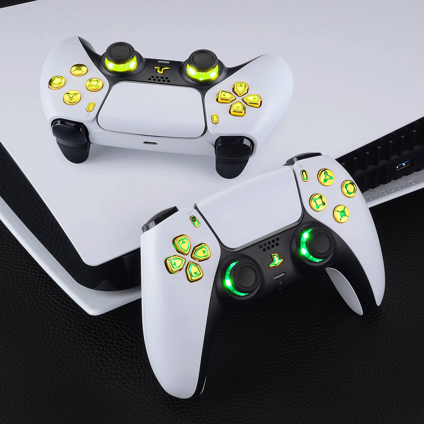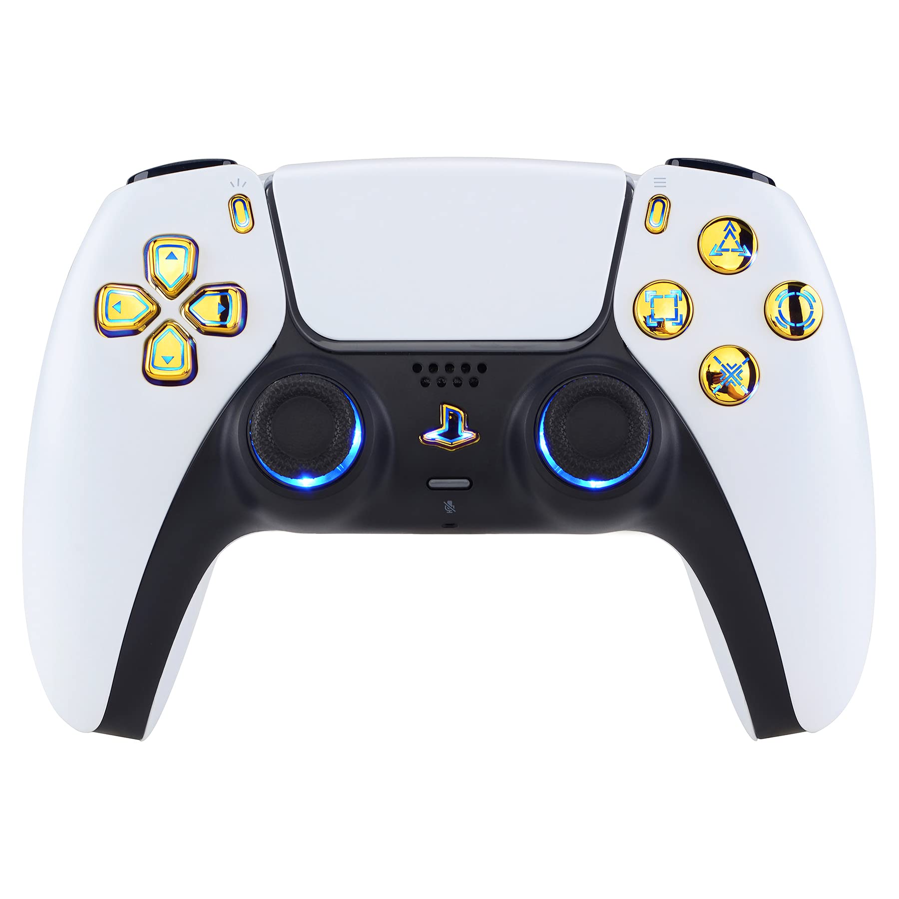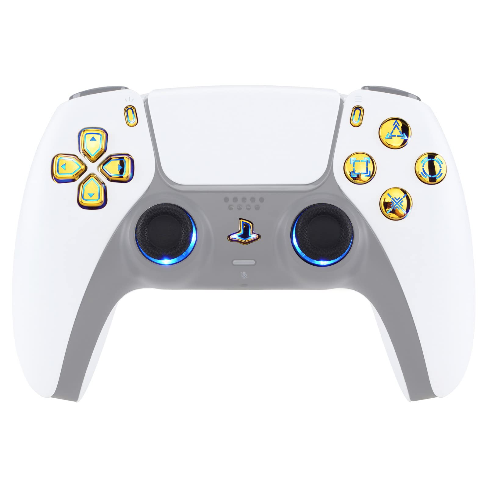 eXtremeRate Multi-Colors Luminated Dpad Thumbstick Share Home Face Buttons for PS5 Controller BDM-010 020 Models, Chrome Gold Classical Symbols Keys DTF V3 LED Kit for PS5 Controller - NO Controller