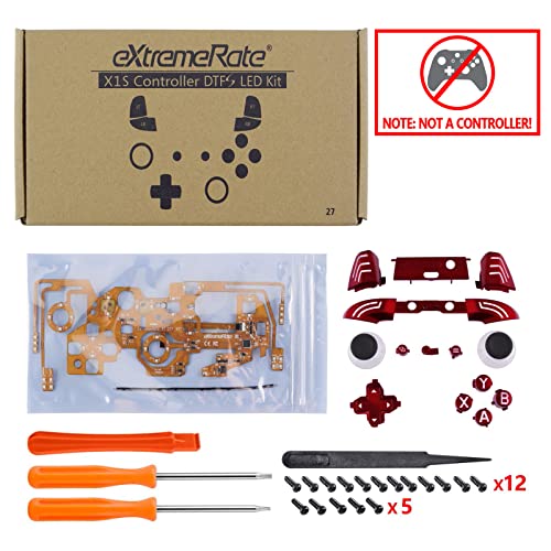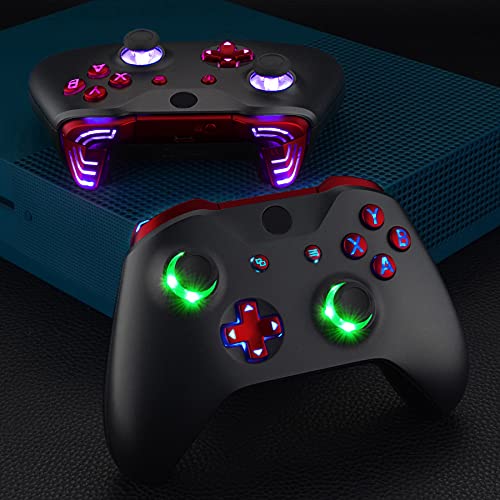 eXtremeRate Multi-Colors Luminated Dpad Thumbsticks Start Back ABXY Action Buttons, Scarlet Red Classical Symbols Buttons DTFS (DTF 2.0) LED Kit for Xbox One S & X Controller - Controller Without