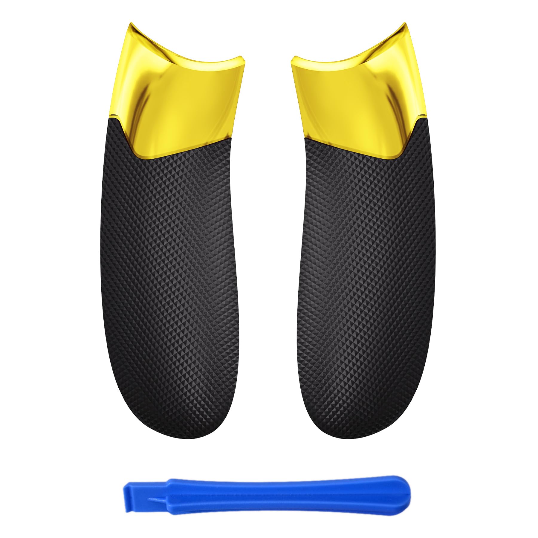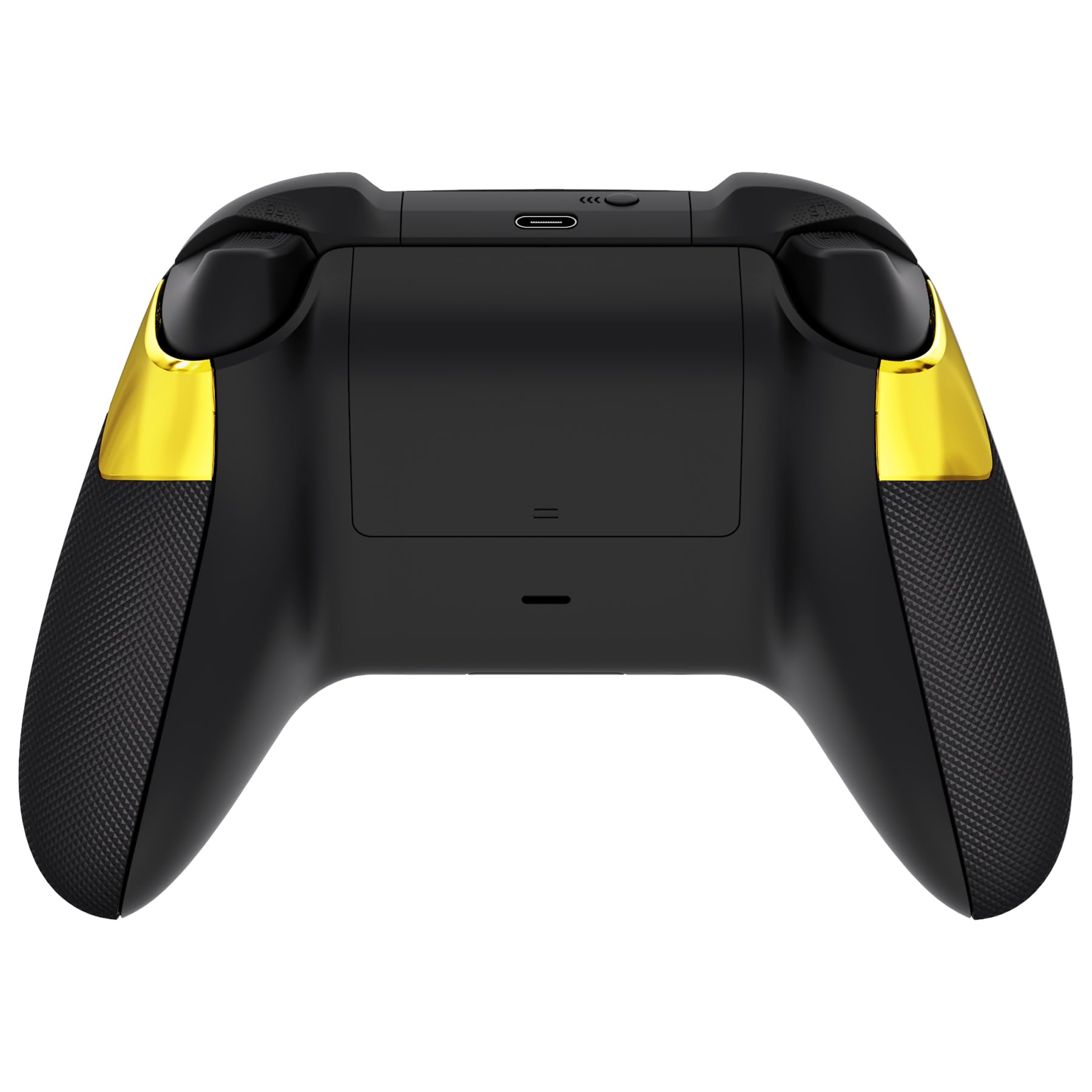 eXtremeRate Performance Rubberized Grips Replacement Back Panels for Xbox Series X|S, Chrome Gold Non-Slip Diamond Texture Side Rails Handles for Xbox Core Controller- Controller Not Included
