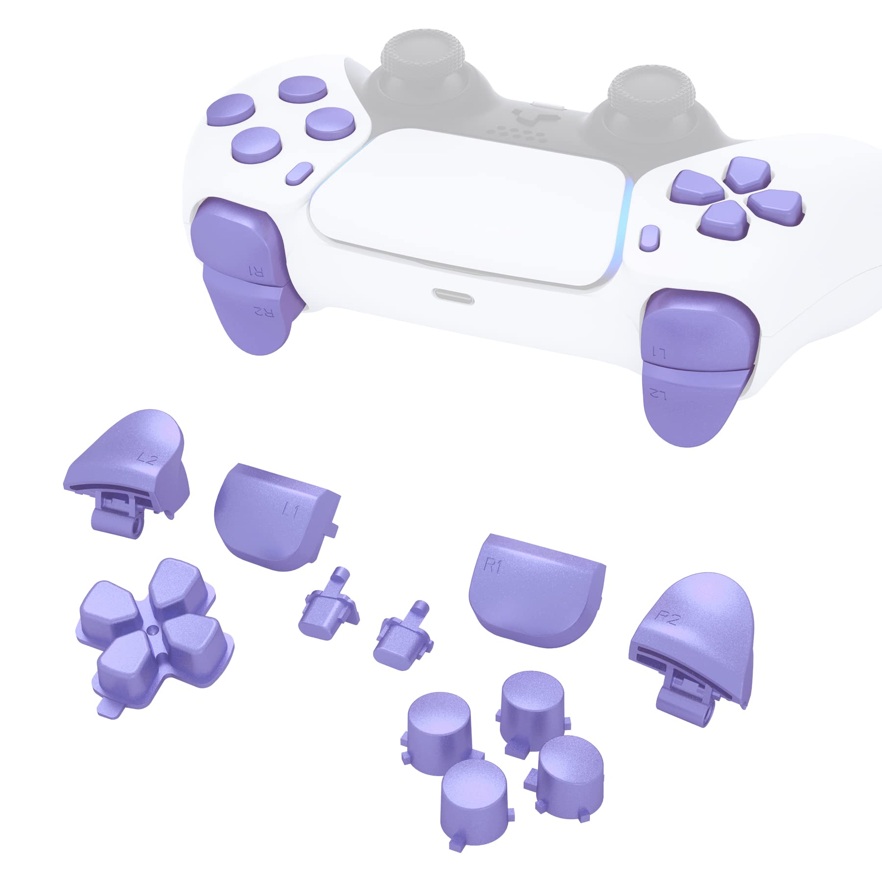 eXtremeRate Replacement D-pad R1 L1 R2 L2 Triggers Share Options Face Buttons, Metallic Snowstorm Mauve Full Set Buttons Compatible with ps5 Controller BDM-010 & BDM-020