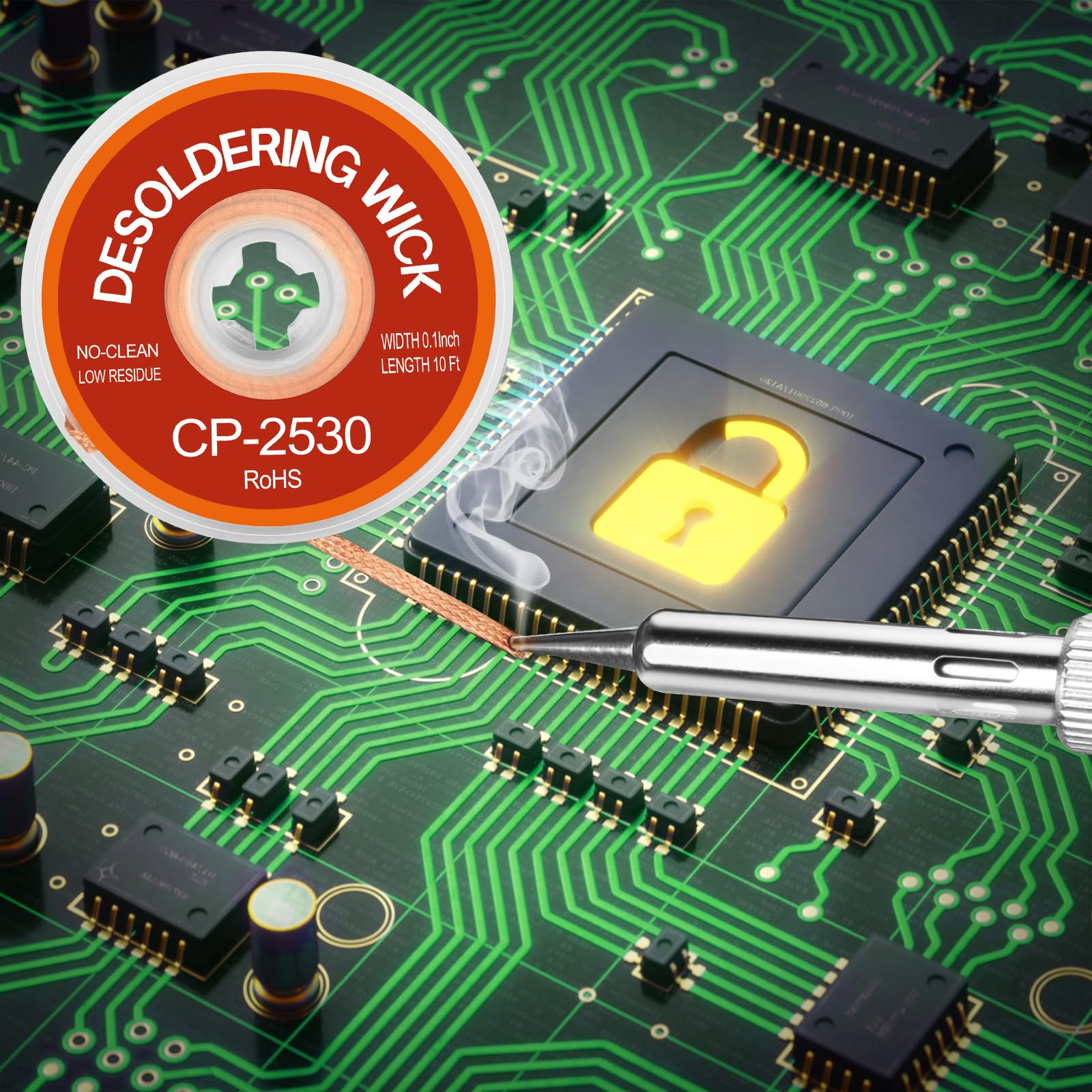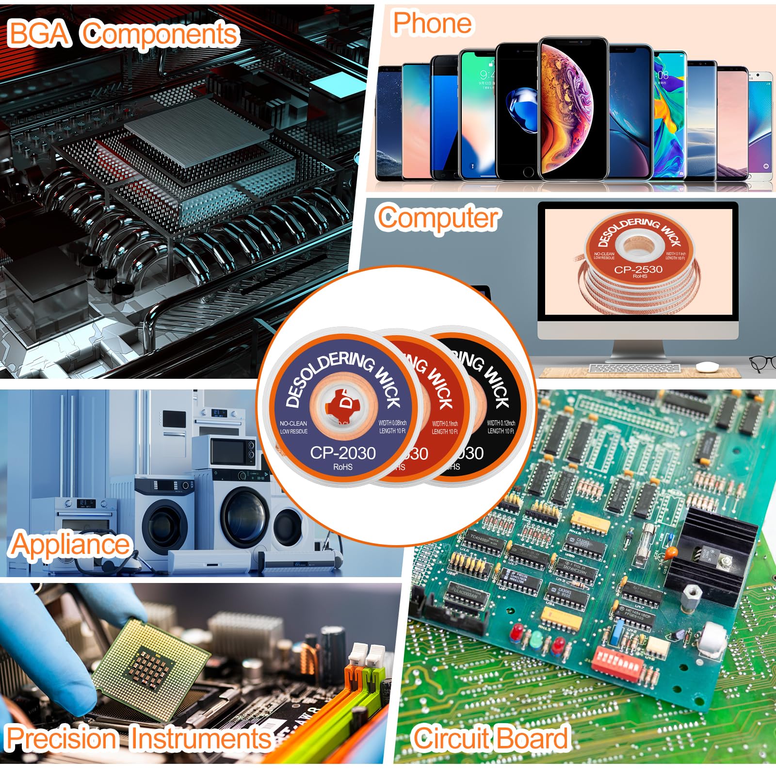 - Multiple Sizes for Precision: 3-piece Antioxidant solder wick braid with 0.08, 0.1, 0.12 inches widths. Ideal for diverse PCB soldering. Ensure accurate desoldering, always have right size. Tackle various tasks efficiently