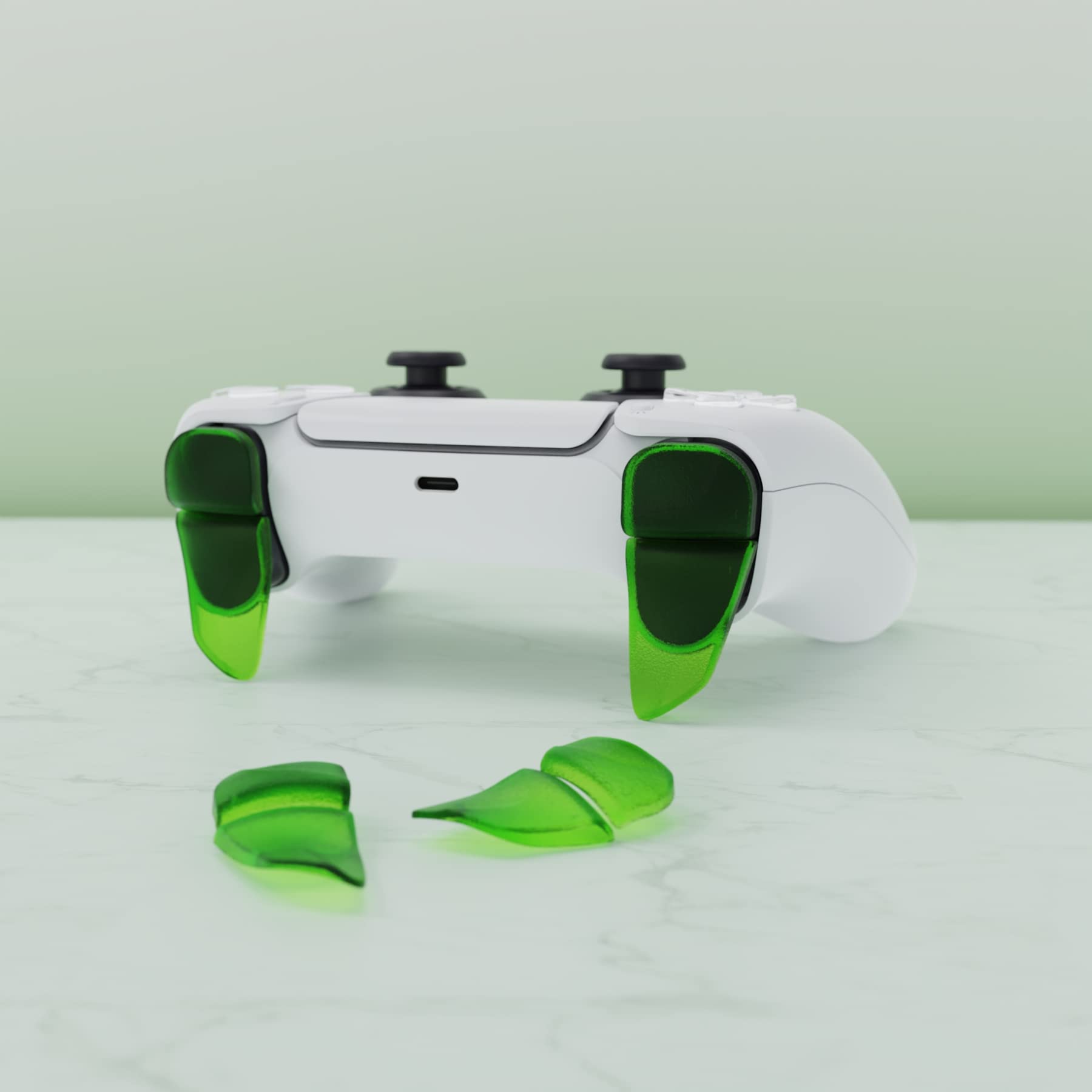 PlayVital Blade 2 Pairs Shoulder Buttons Extension Triggers for ps5 Controller, Game Improvement Adjusters for PS Portal Remote Player, Bumper Trigger Extenders for ps5 Edge Controller - Clear Green