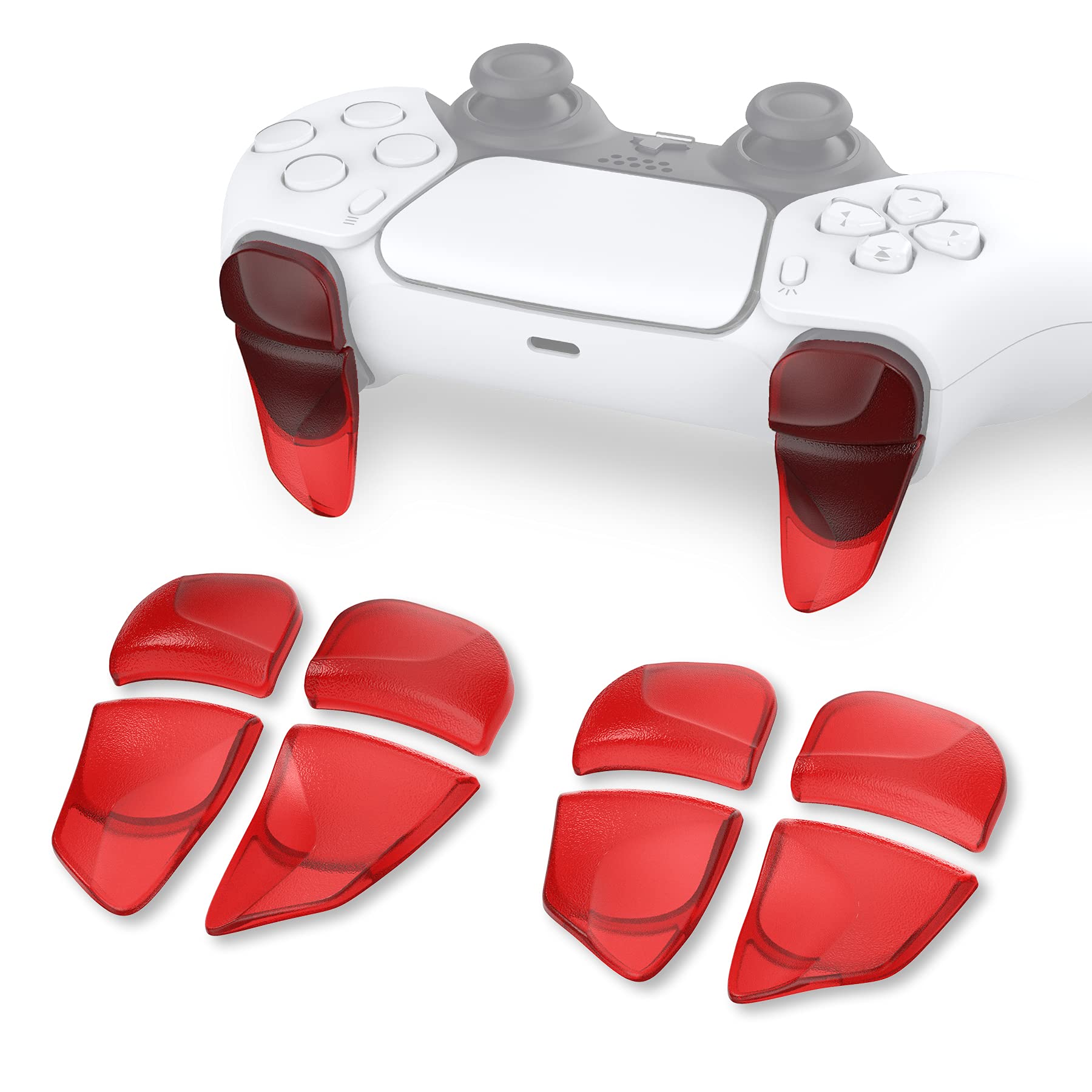 PlayVital Blade 2 Pairs Shoulder Buttons Extension Triggers for ps5 Controller, Game Improvement Adjusters for PS Portal Remote Player, Bumper Trigger Extenders for ps5 Edge Controller - Clear Red