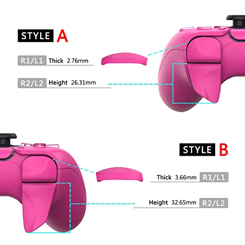 - Package include 2 pairs of L1R1 L2R2 bumpers and triggers extenders for ps5 controller, of which L1R1 extenders has two thicknesses, and L2R2 extenders have two length. You can choose the corresponding trigger adjuster according to your needs