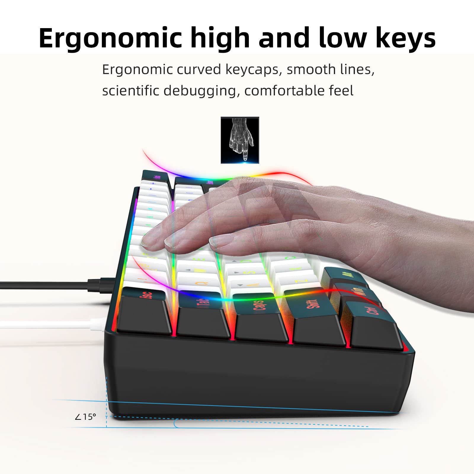 Snpurdiri 60% Wired Gaming Keyboard, 61 Keys RGB Backlit Ultra-Compact Small Gaming Keyboard, for PC/Mac Gamer, Typist, Travel, Easy to Carry on Business Trip(Black-White)